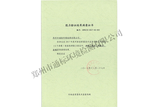 能力驗(yàn)證結(jié)果滿意證書(shū)