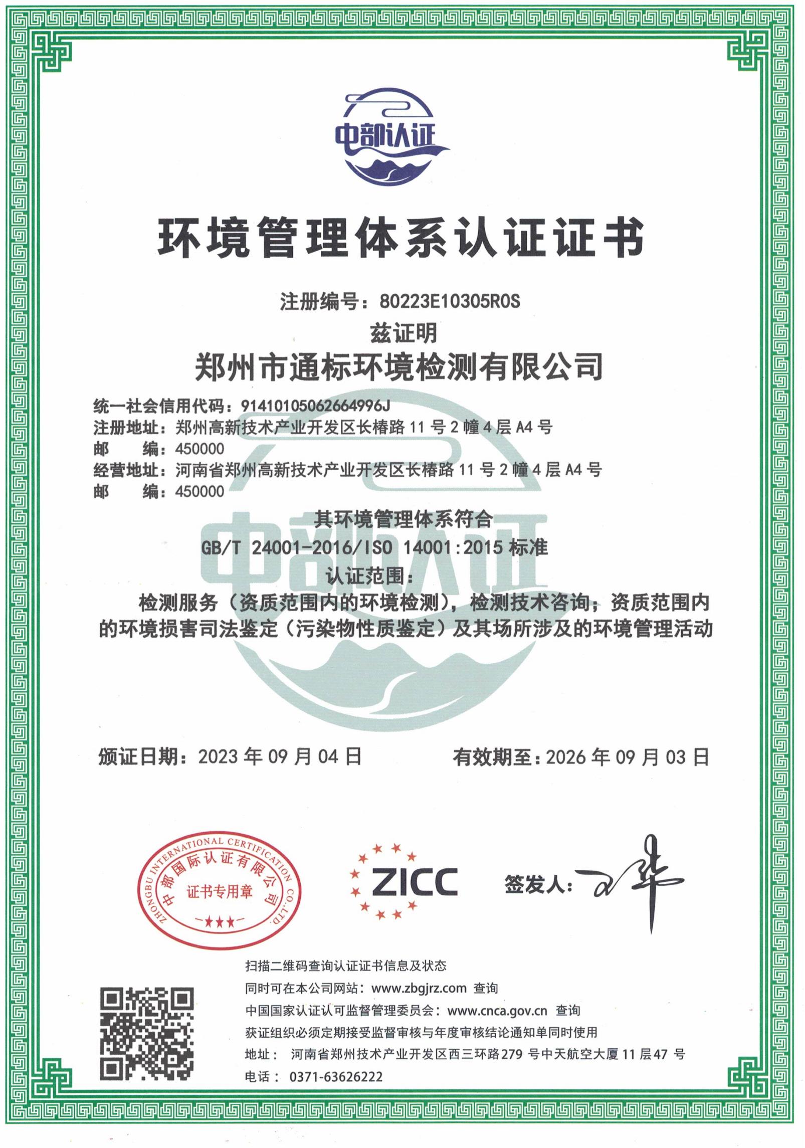 鄭州市通標(biāo)環(huán)境檢測(cè)有限公司